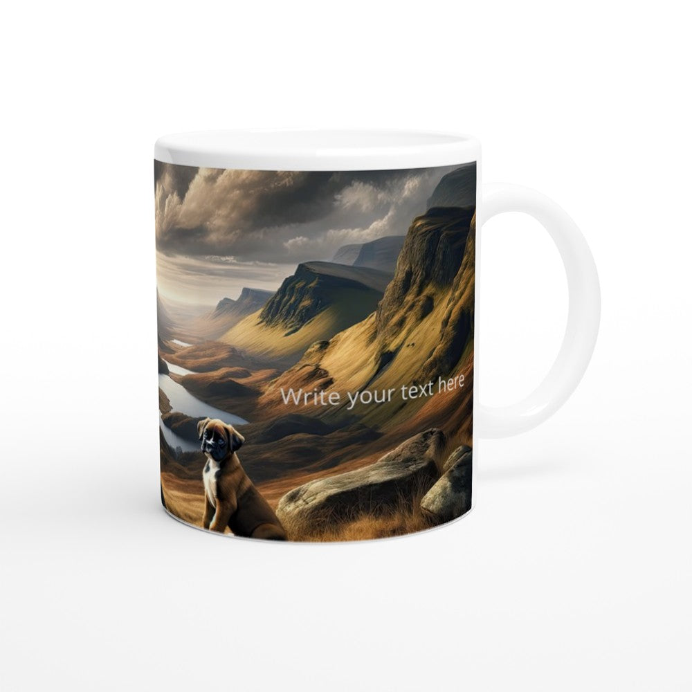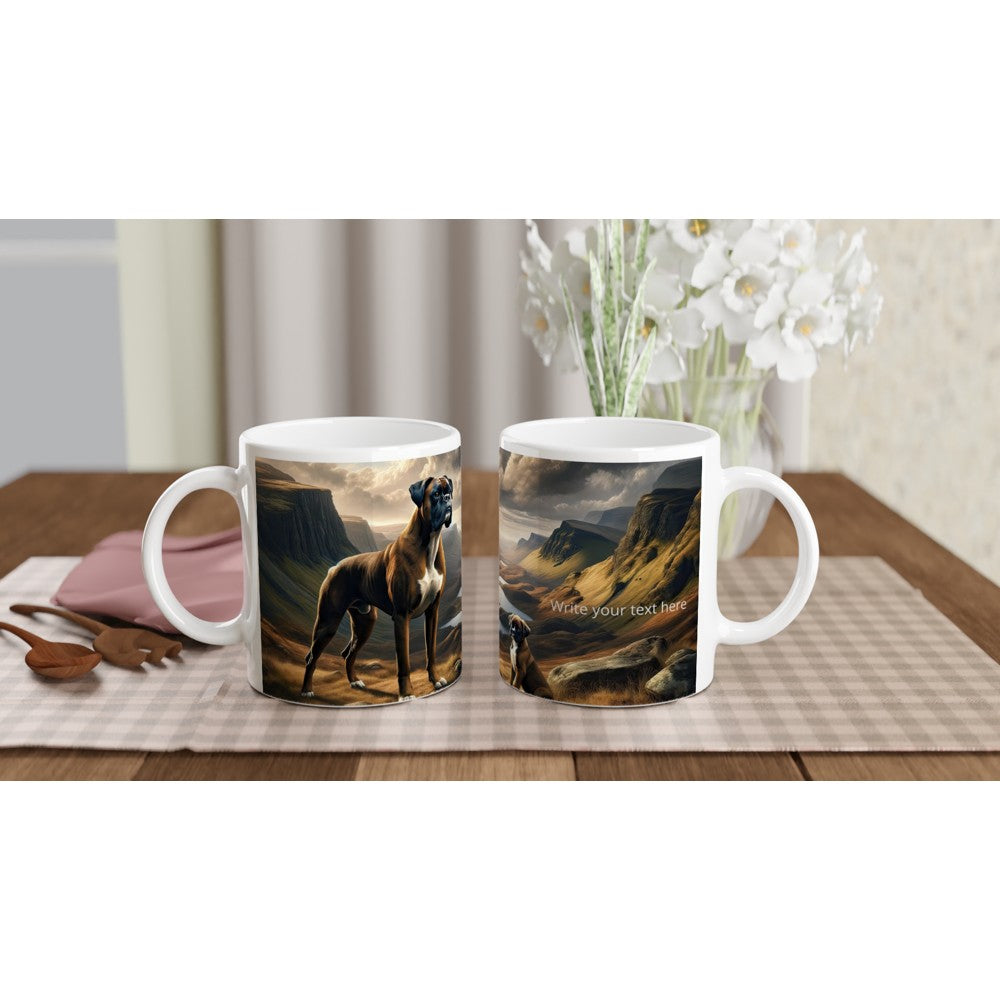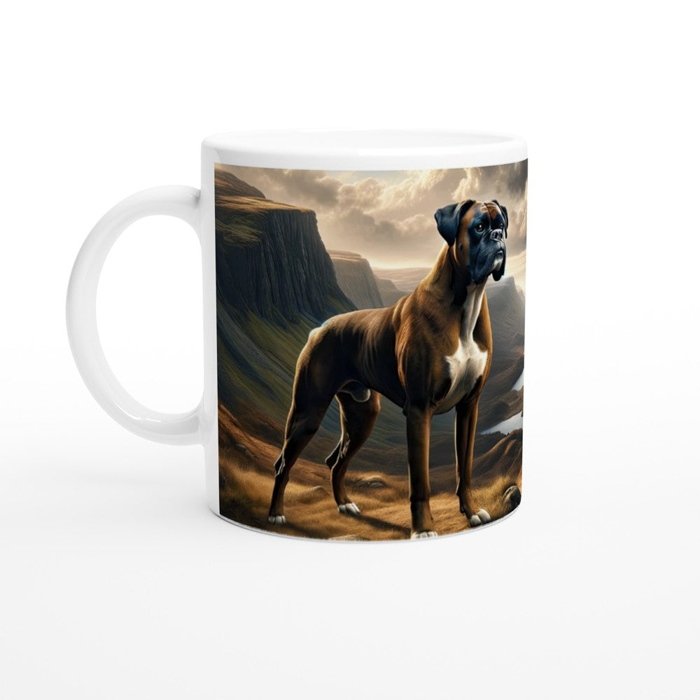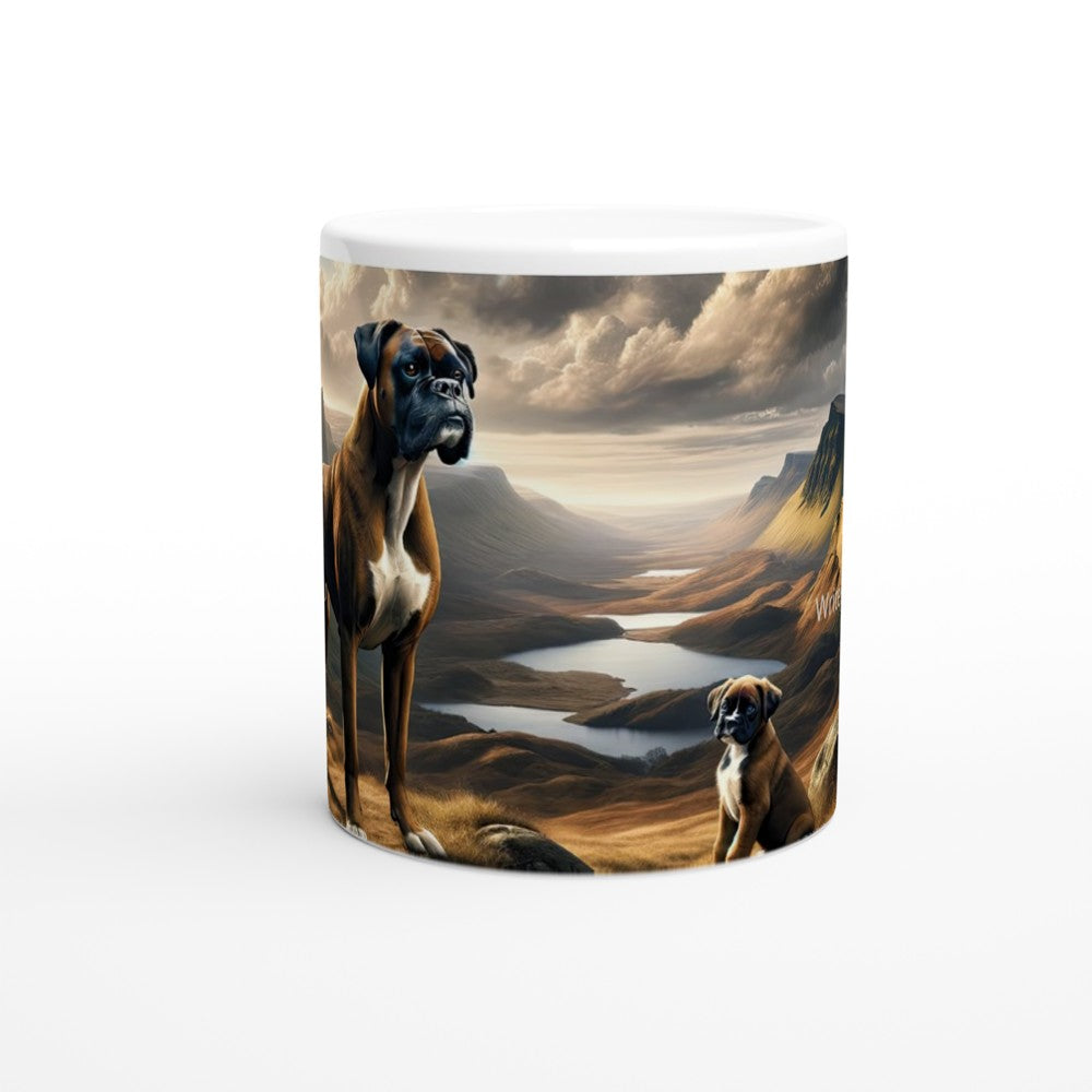 Enjoy your morning coffee or evening tea with this unique and serene design that captures the majestic essence of Boxers in the great outdoors. The glossy white finish enhances the vibrant, detailed artwork, ensuring the scene truly comes to life.