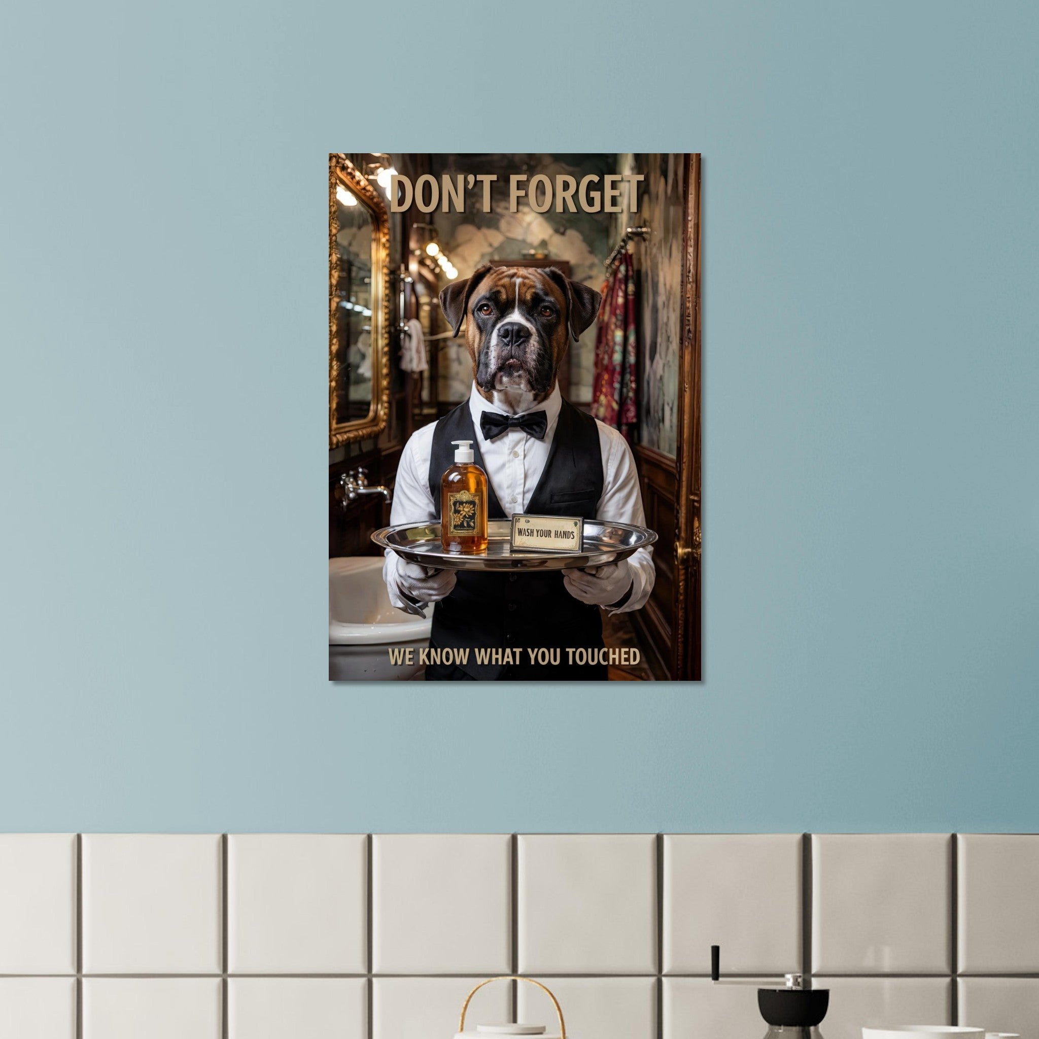 This Boxer butler is here to make sure you remember — hygiene isn’t optional 🧼🐾