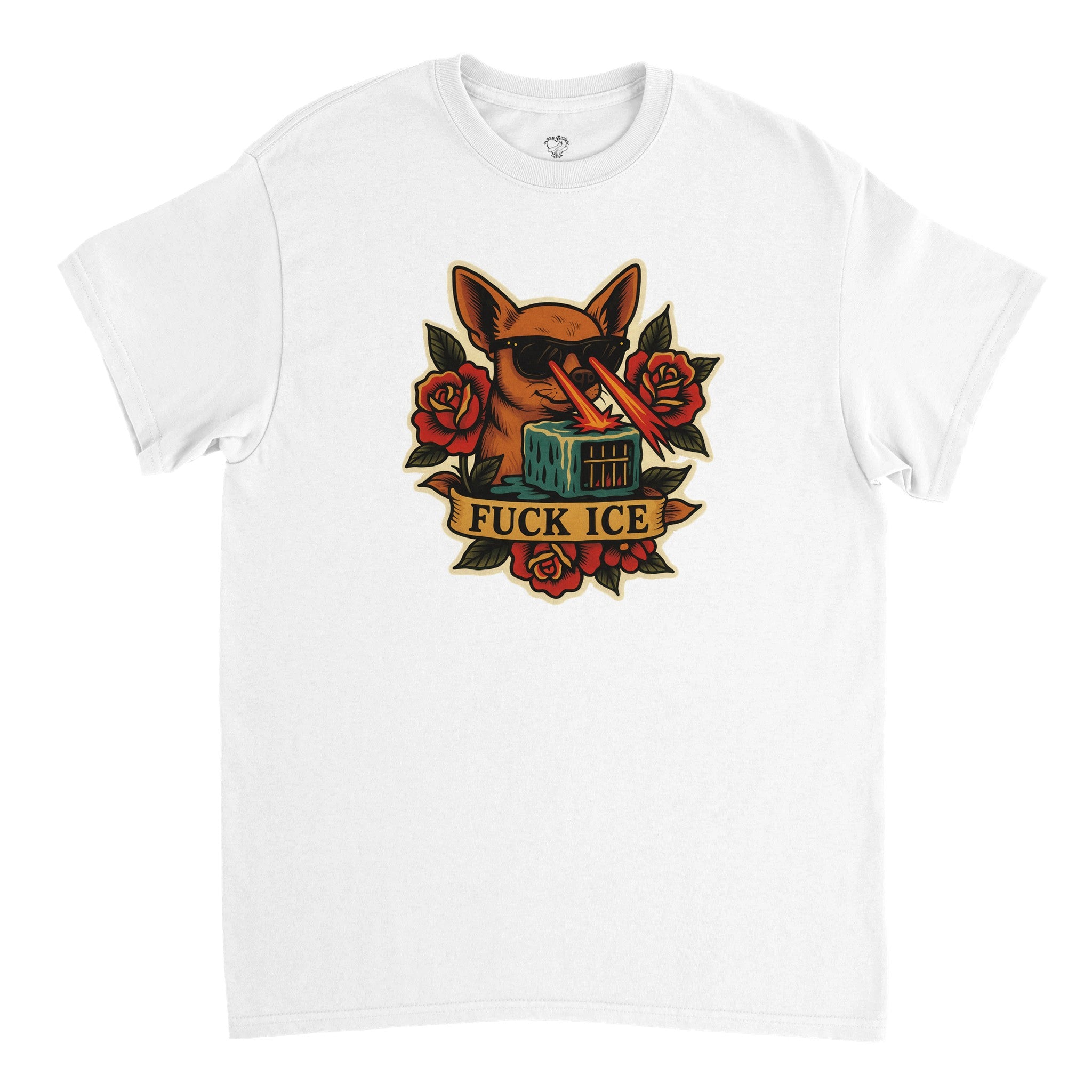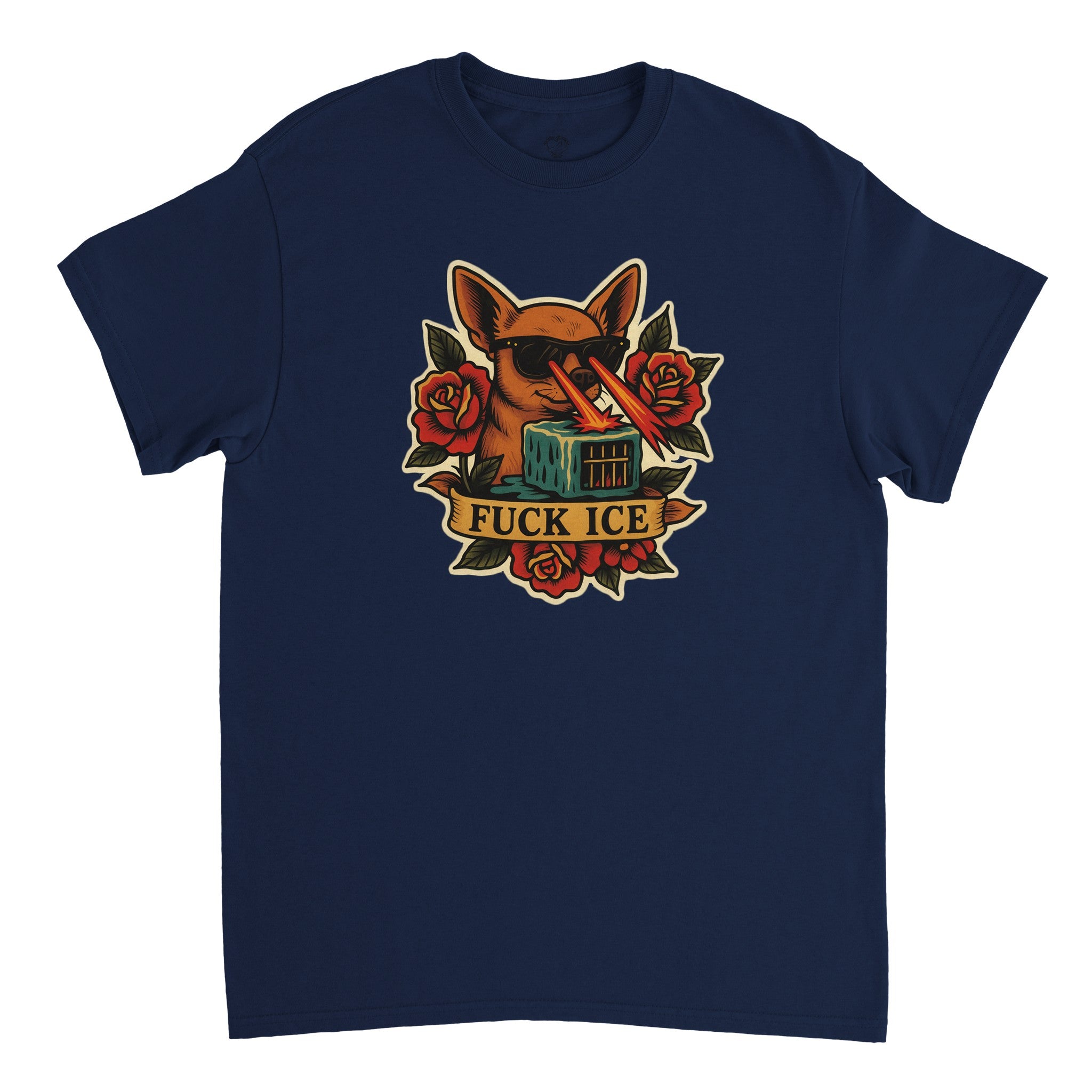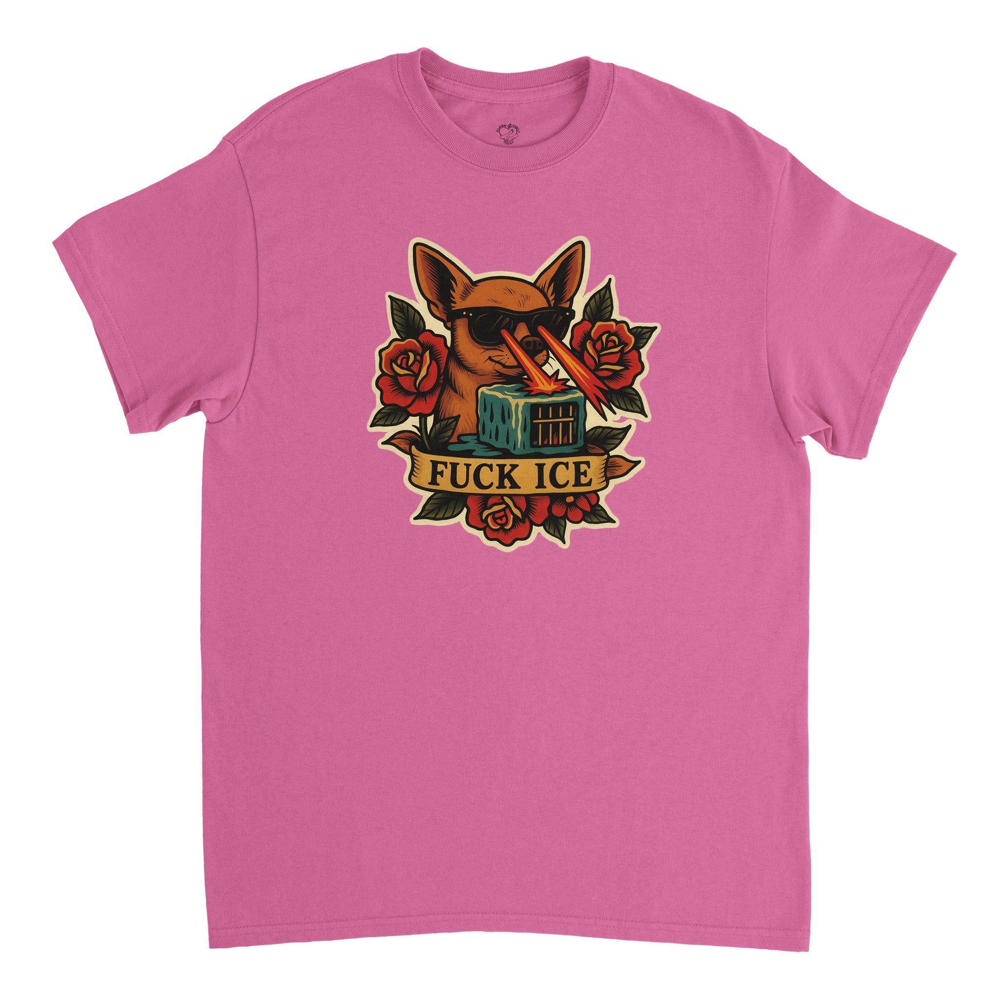 🔥 Melting ice, maximum attitude. This fearless chihuahua brings the heat — rocking shades, laser eyes, and classic tattoo roses. With a blast of fiery energy, he melts through ice like it’s nothing.