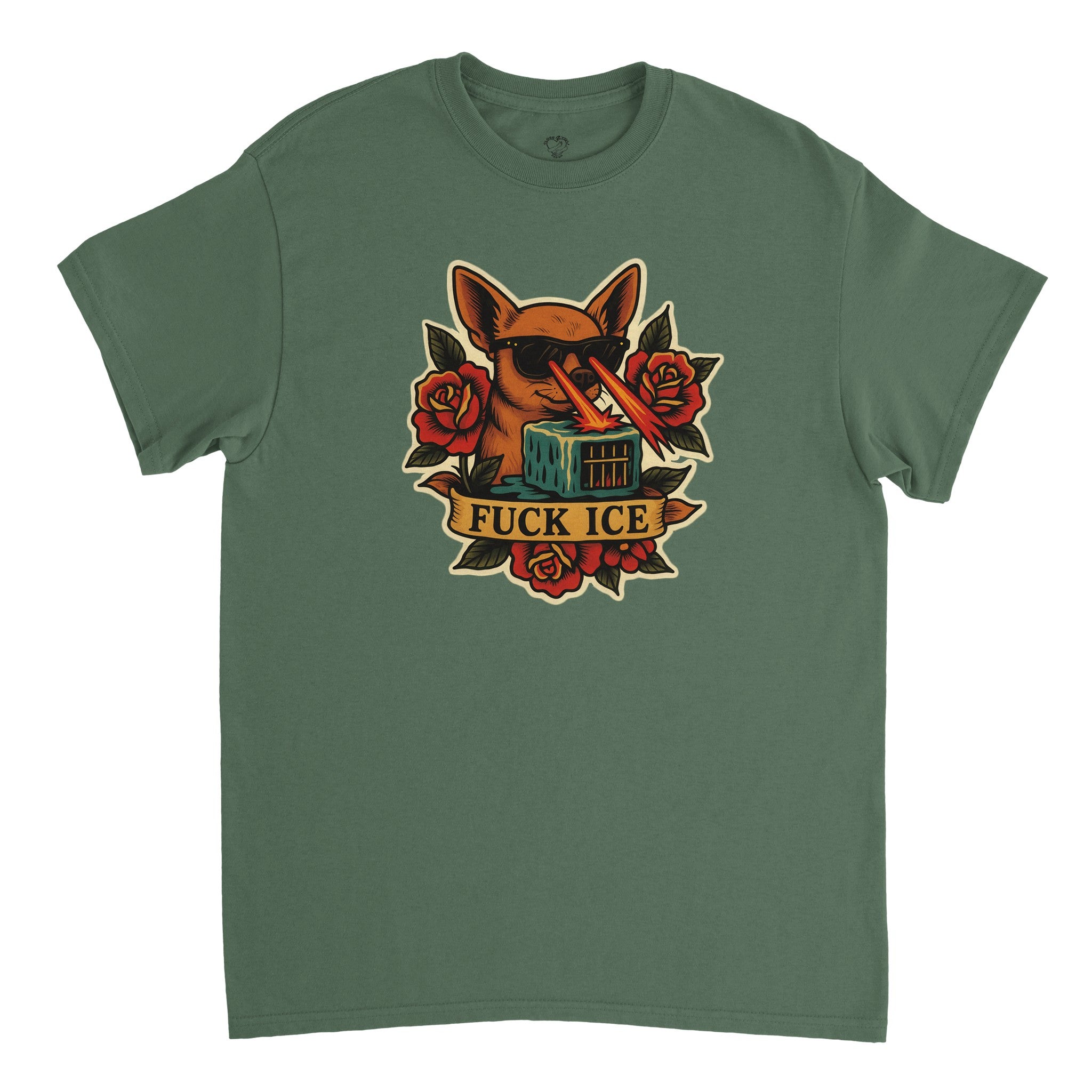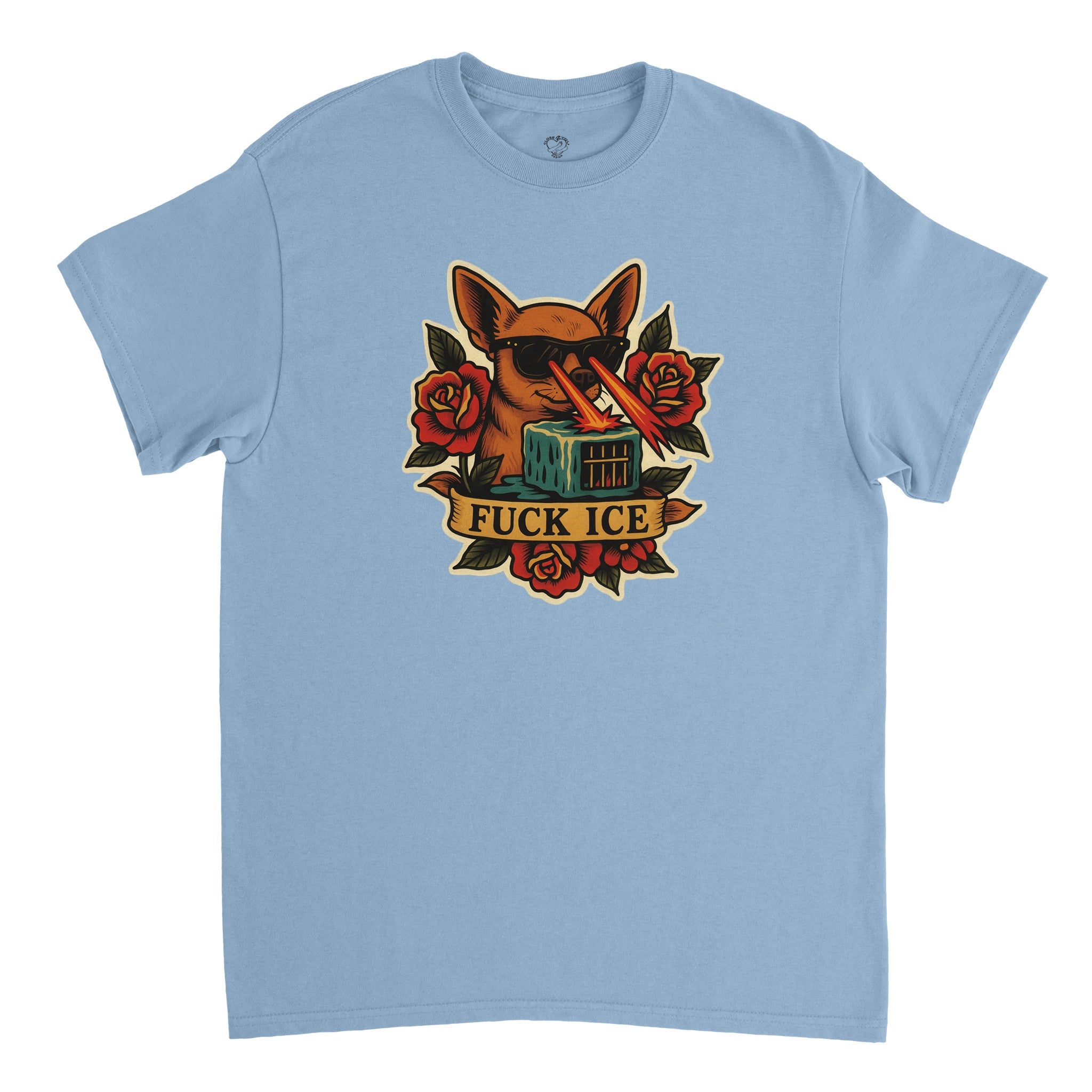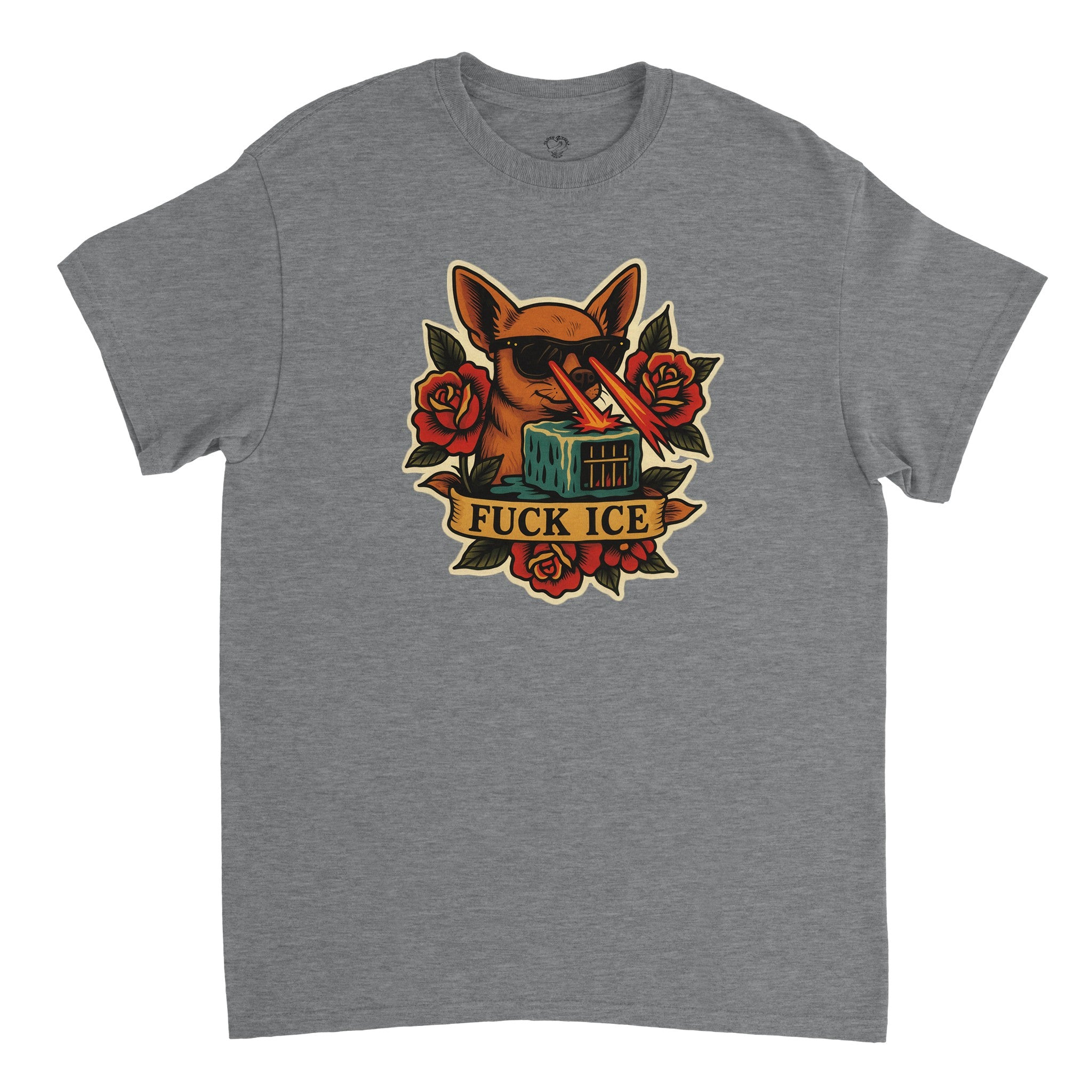 🔥 Melting ice, maximum attitude. This fearless chihuahua brings the heat — rocking shades, laser eyes, and classic tattoo roses. With a blast of fiery energy, he melts through ice like it’s nothing.