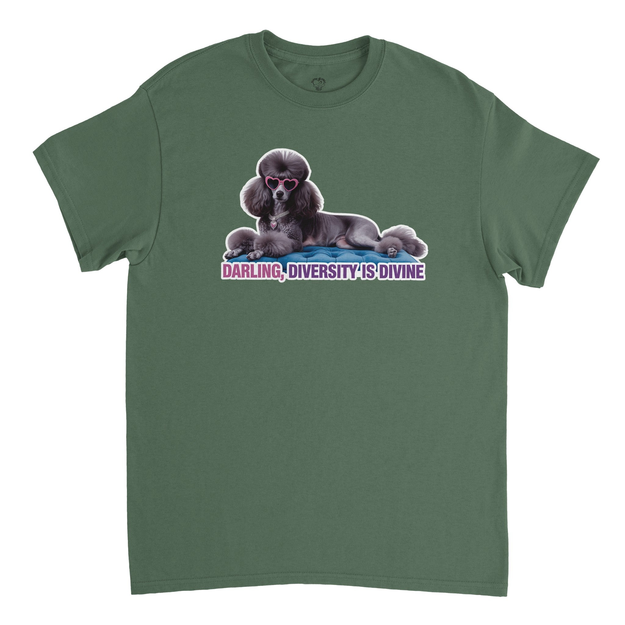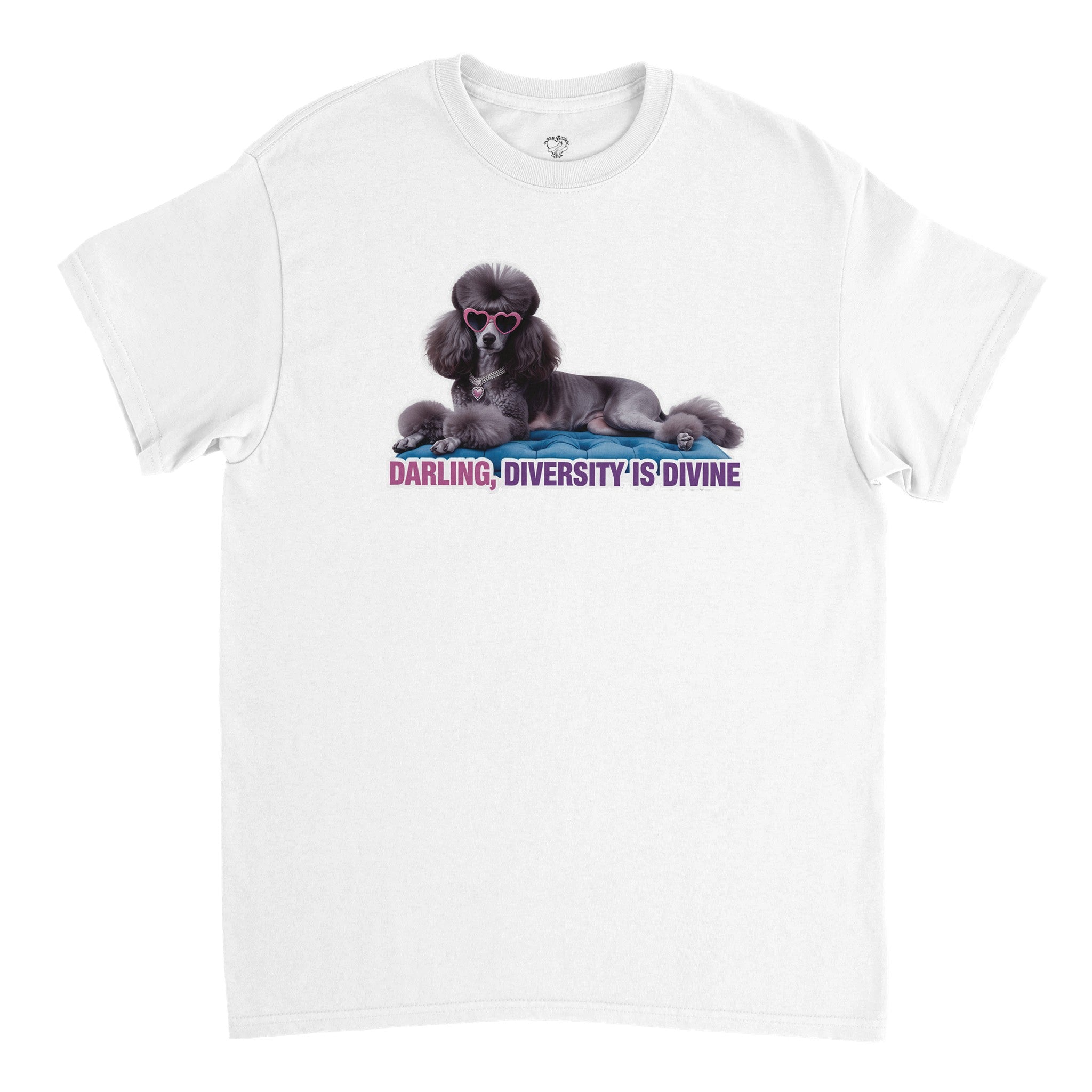 ✨ Darling, diversity is divine. This glamorous poodle knows how to make an entrance — lounging in style with heart-shaped shades, diamond sparkle, and a bold message worth celebrating.