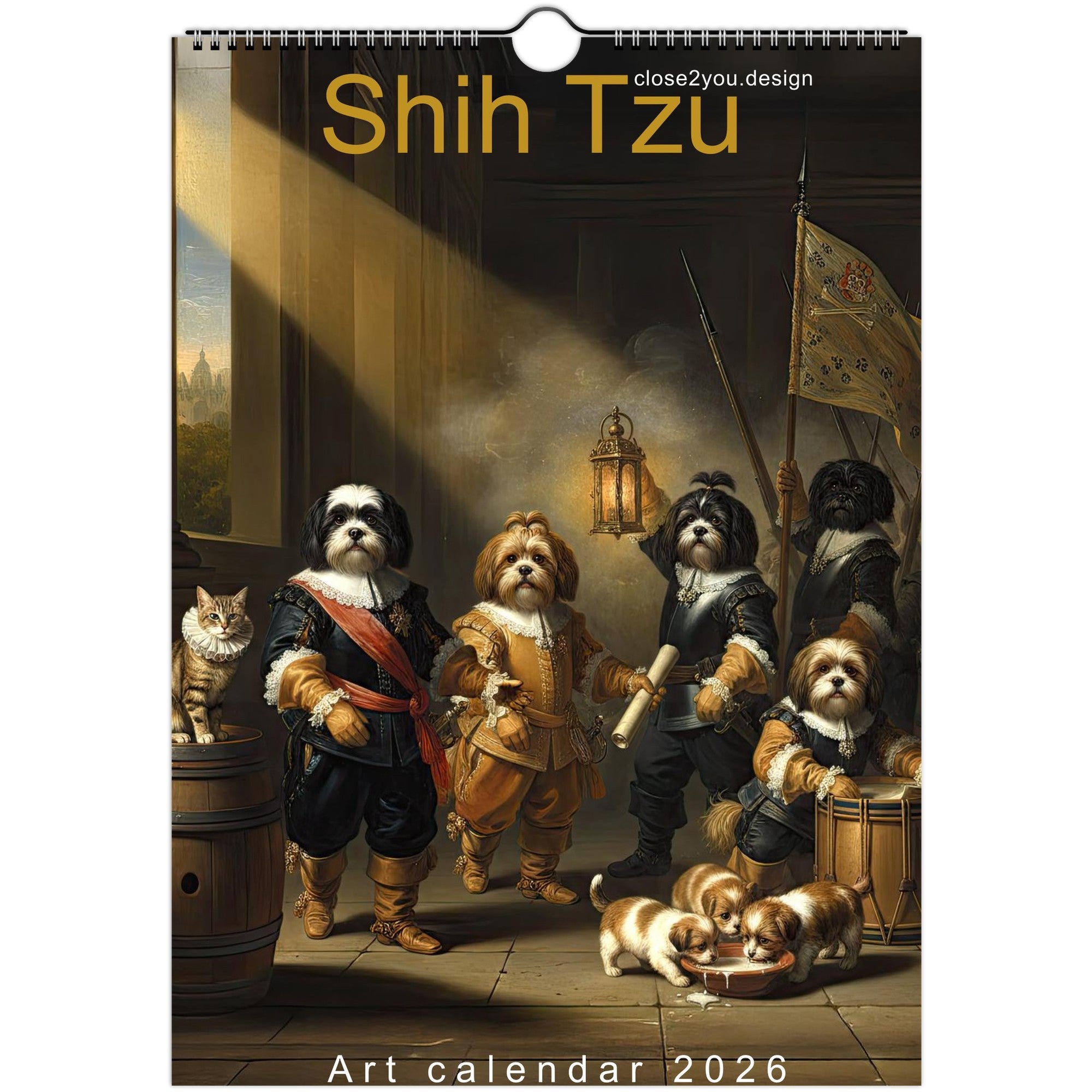 Celebrate the new year with twelve unique portraits of your favorite breed—each month reimagined in the spirit of world-famous artists like Van Gogh, Lichtenstein, Dalí, Rembrandt, Munch, and more. This 2026 calendar blends creativity, humor, and Shih Tzu charm to add art and personality to any space.
